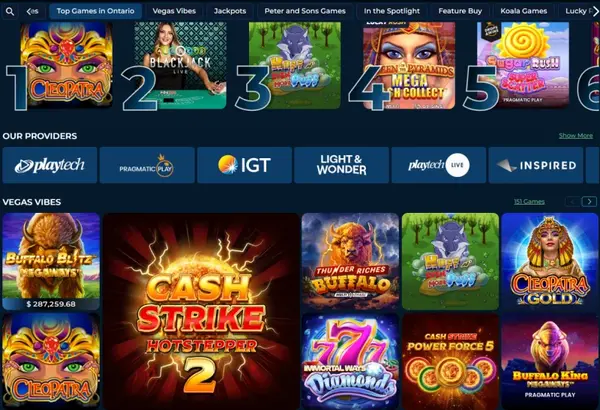 NorthStarBets collabore avec des fournisseurs reconnus afin que vous puissiez jouer à des logiciels sous licence sur un marché ontarien réglementé. Cela inclut Playtech et Playtech Live pour le contenu RNG et croupiers en direct, ainsi que Pragmatic Play, IGT, Light & Wonder, Inspired, Hacksaw, GreenTube, ReelPlay et Games Global pour une grande variété de jeux.